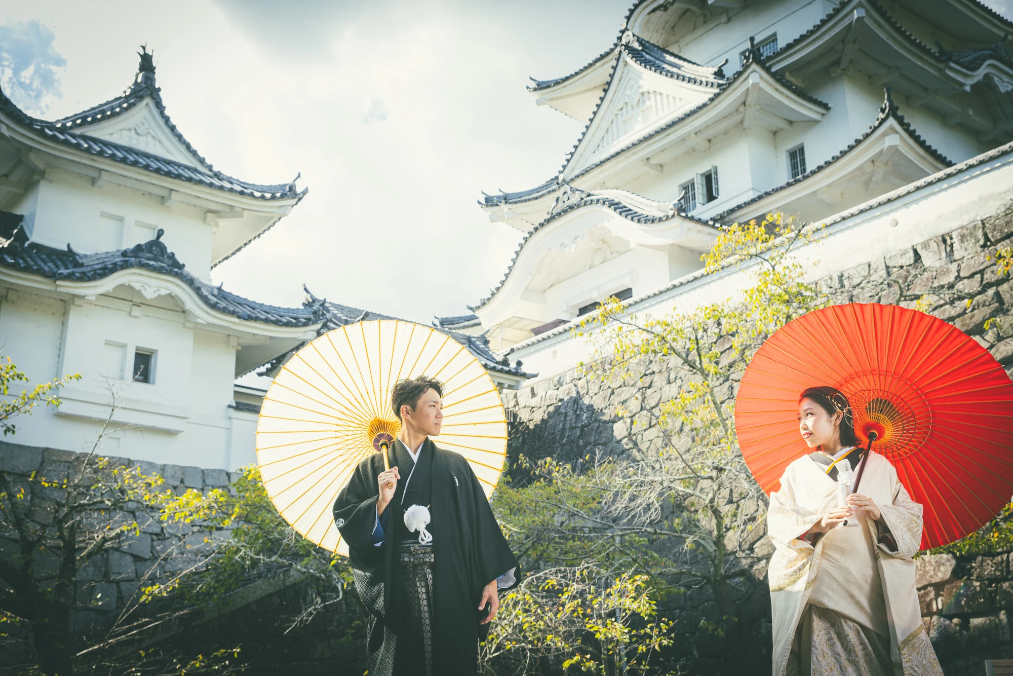 伊賀上野城、神社、城下町で撮影が可能。城下町には和菓子屋がたくさんあるので和菓子の食べ歩きをしながら撮影ができます。桜や紅葉もきれいです。
