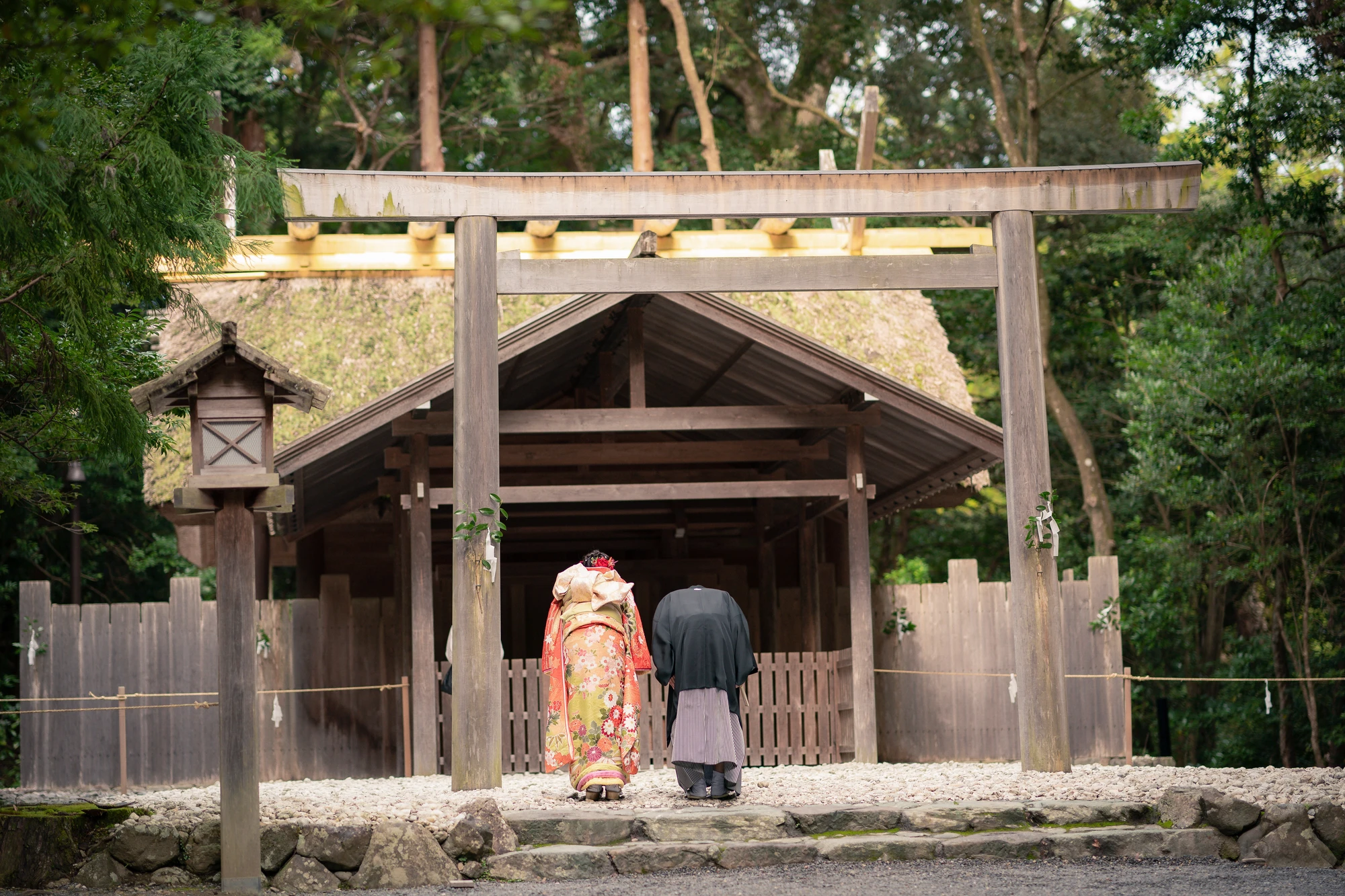 衣食住、産業の守護神である「豊受大御神さま」にお二人の結婚の奉告をいたします。神聖な空気に身も心も清められます。