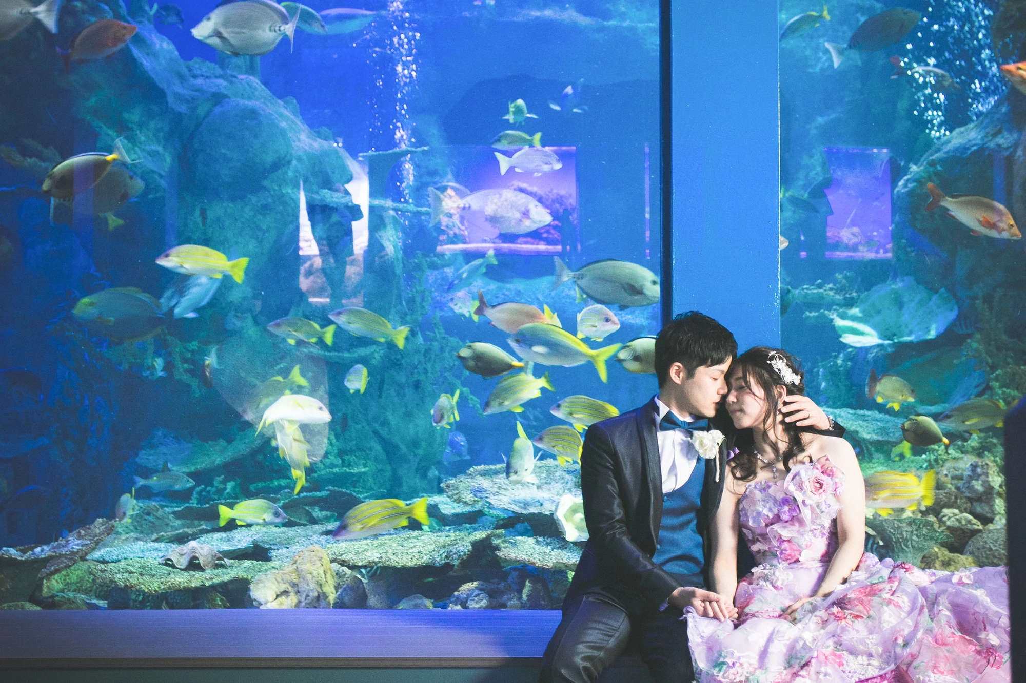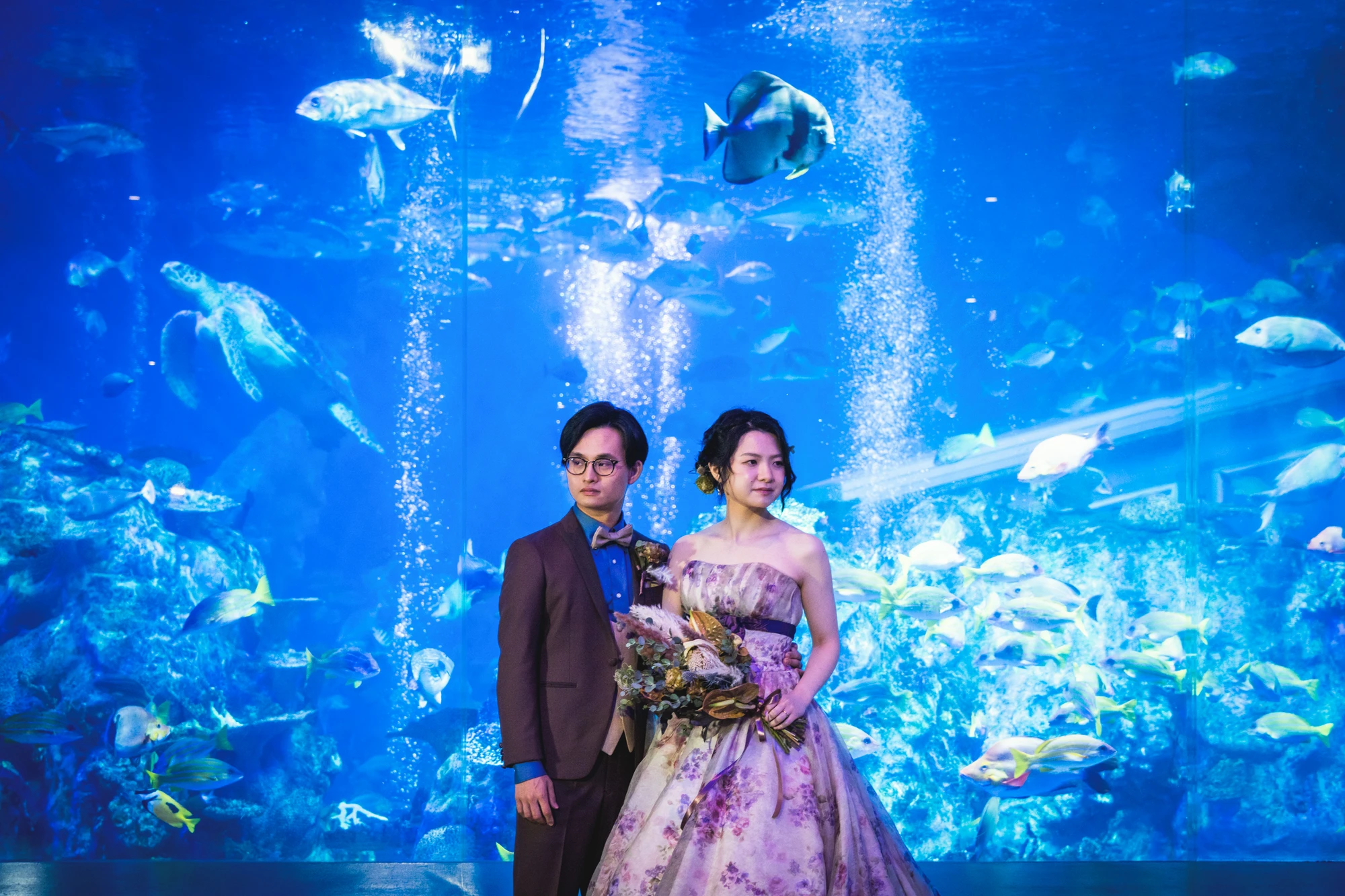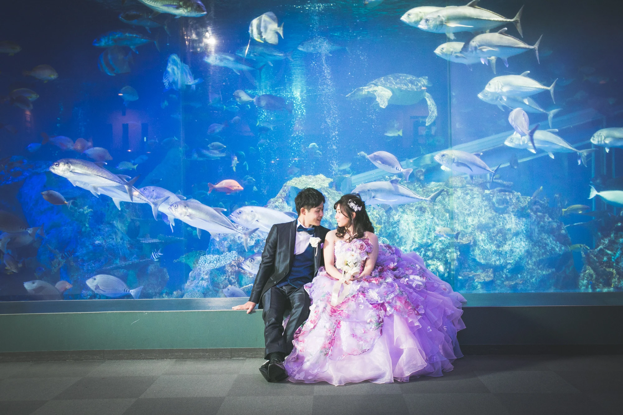 日本を代表する鳥羽水族館で閉園後に貸切りで撮影します。うみがめやたくさんの魚が泳ぐ大水槽の前で幻想的なフォトが撮影できます。