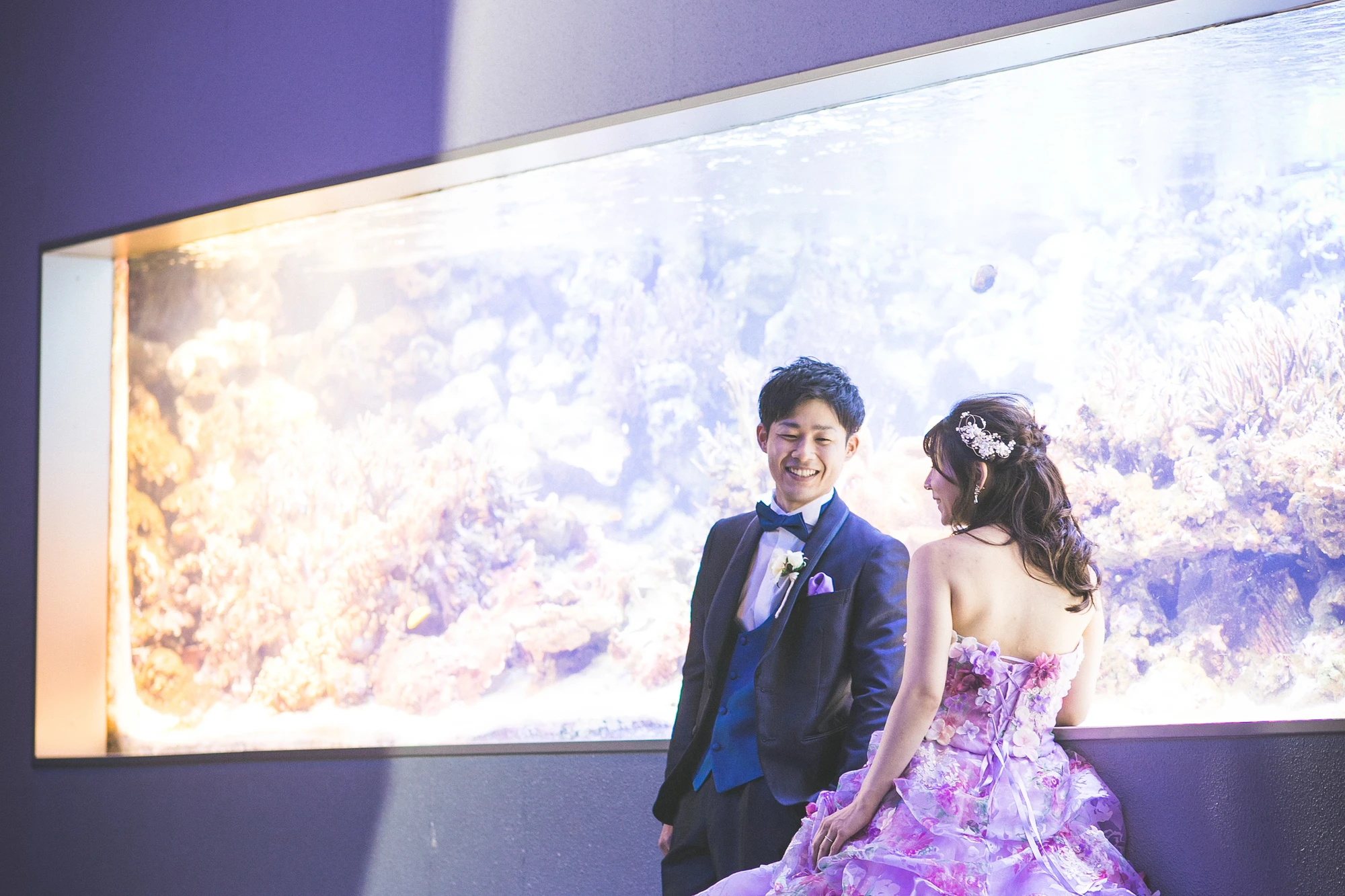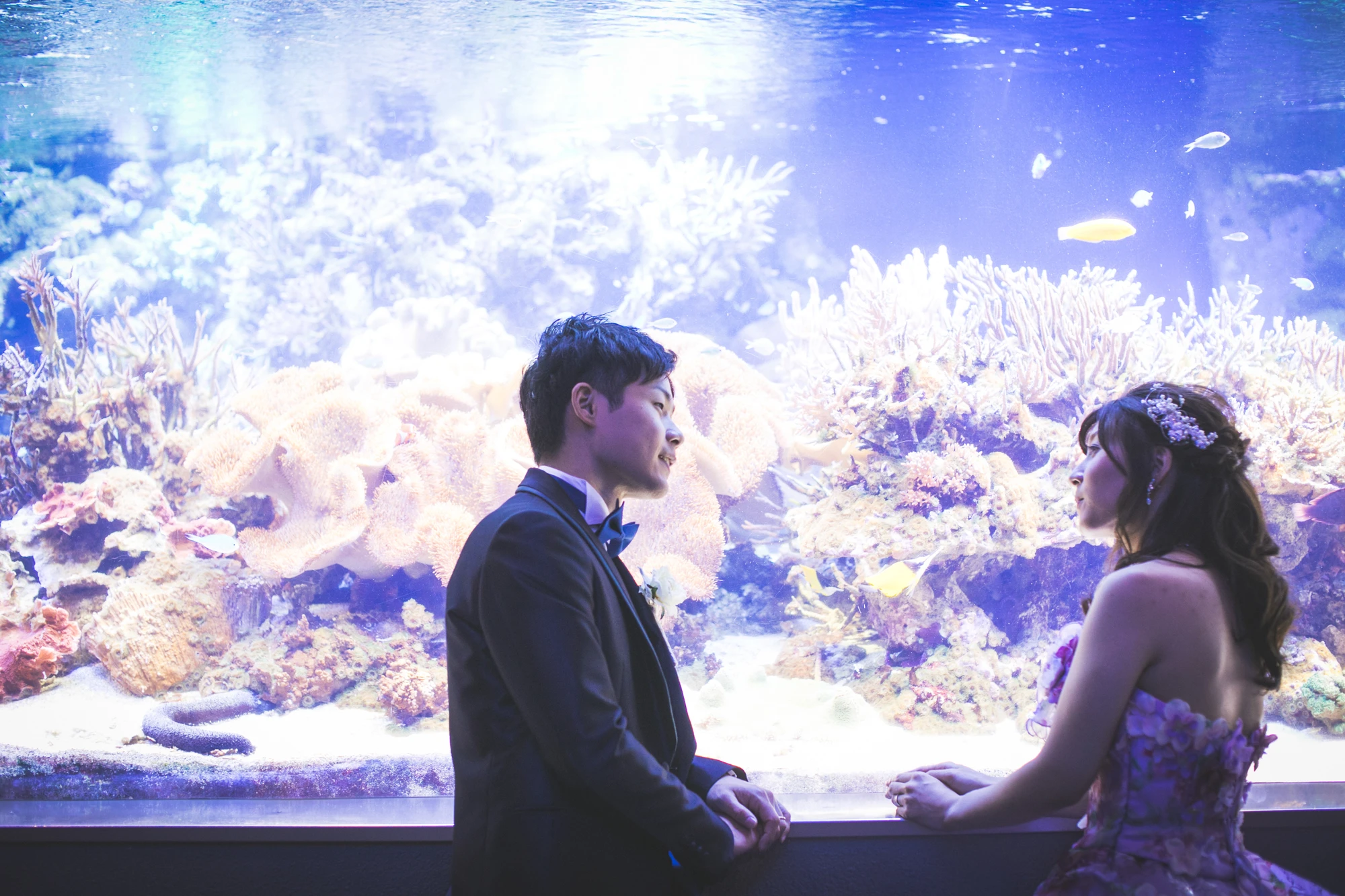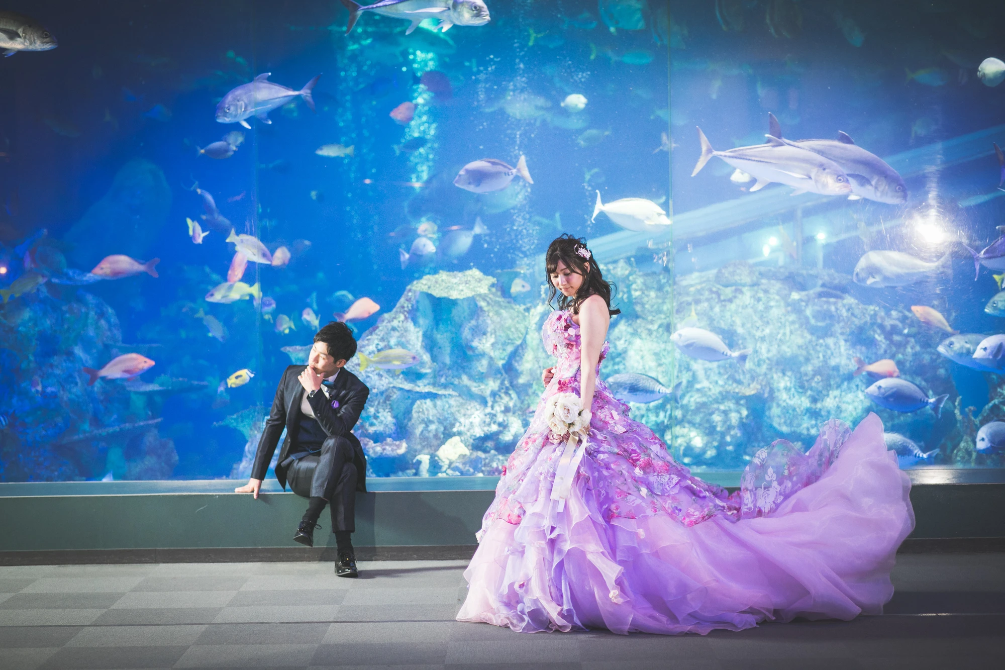 日本を代表する鳥羽水族館で閉園後に貸切りで撮影します。うみがめやたくさんの魚が泳ぐ大水槽の前で幻想的なフォトが撮影できます。