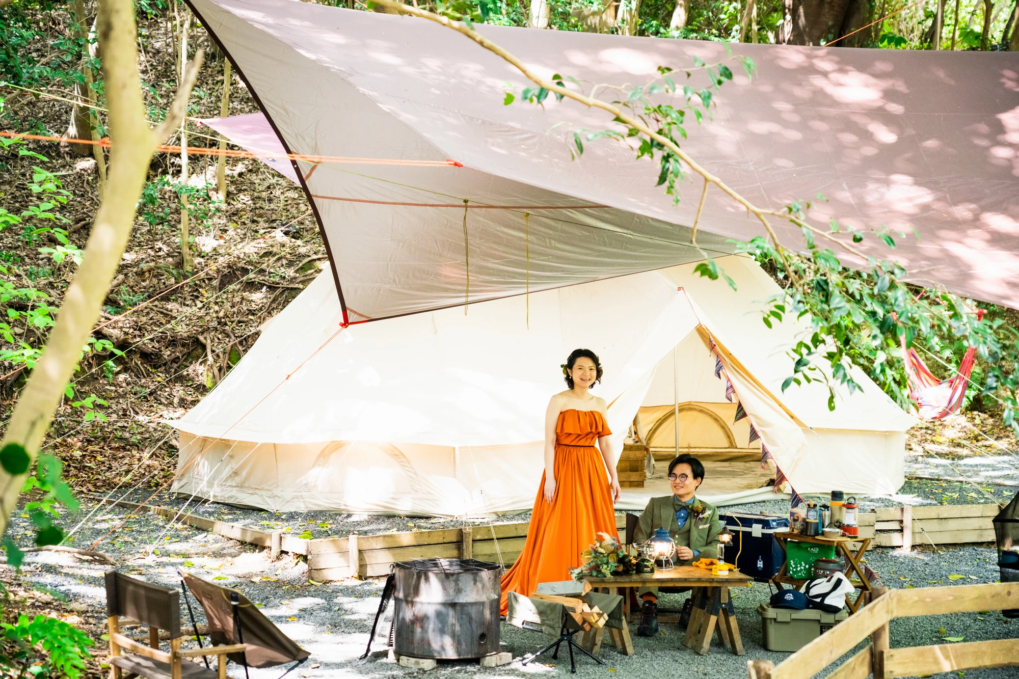 目の前に田曽の浦が広がる豊富なアクティビティーが楽しめるグランピング施設。海・森・空を感じながらロケーション撮影が楽しめる場所。