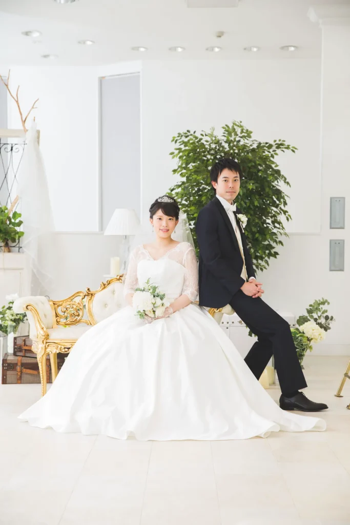 スタジオでのウエディングフォト撮影は天候や暑さ、寒さなどを気にすることなくいつでも素敵な写真が撮れるのが魅力です。