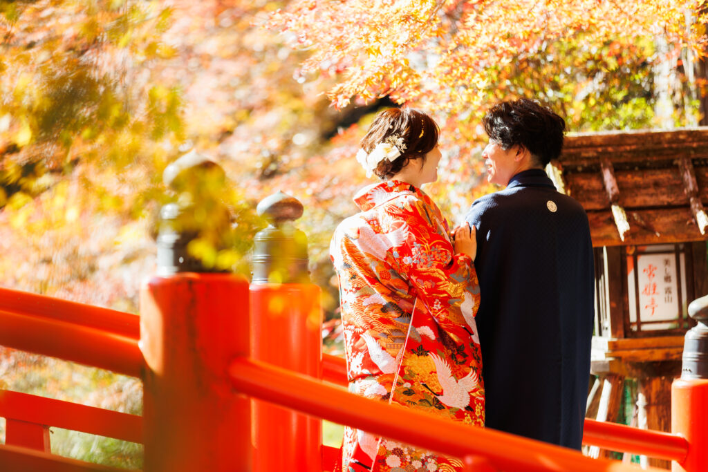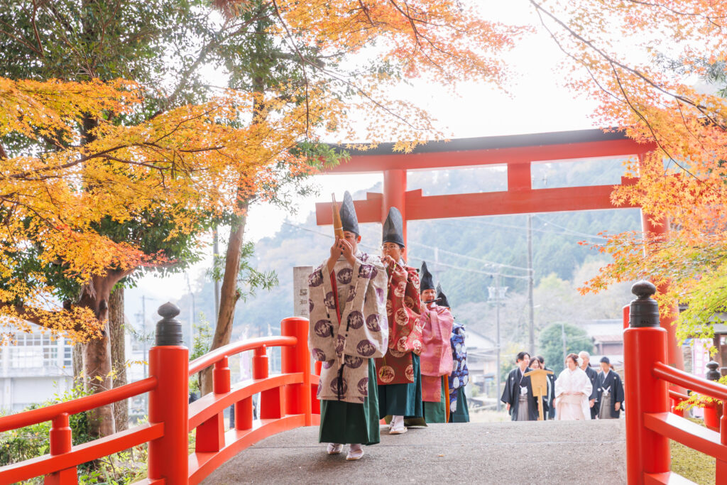 東京にお住まいのおふたりが、新婦様のご実家がある三重での挙式を検討され、いくつか神社を巡る中で心を決められたのが、紅葉の名所として名高い北畠神社でした。