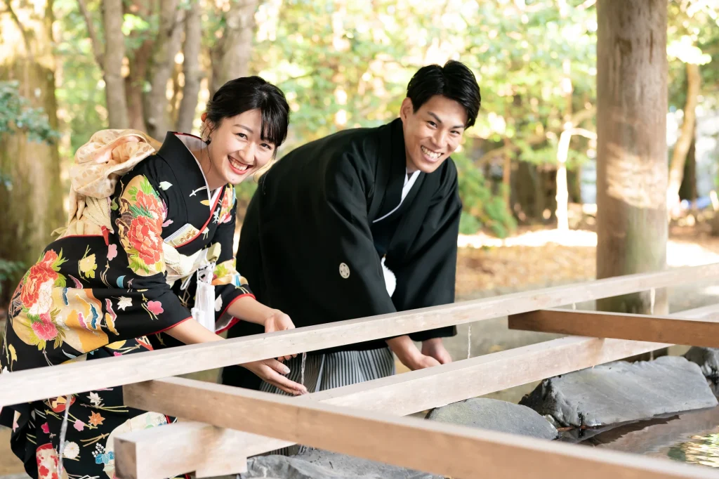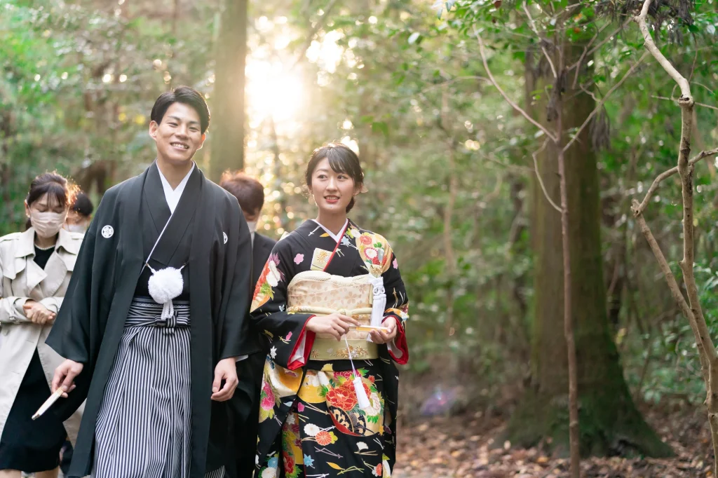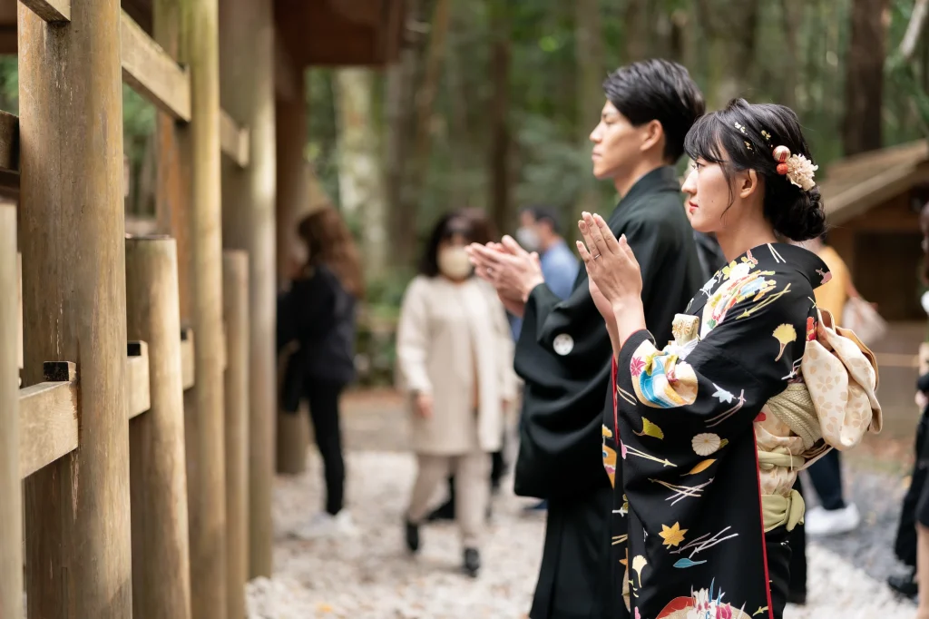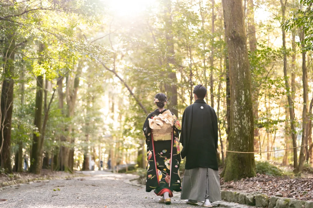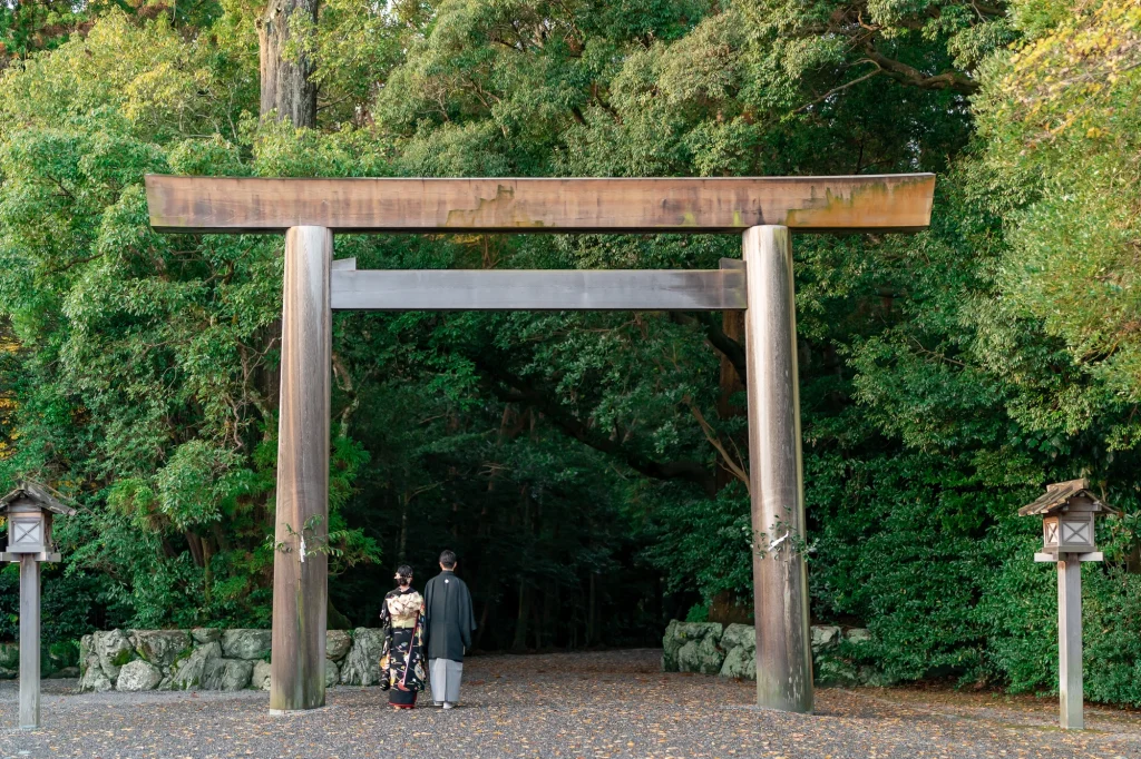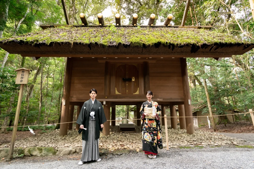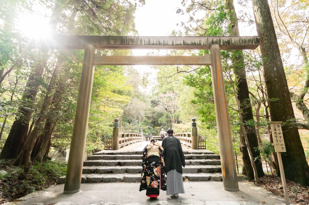高知県からお越しくださったお二人。伊勢神宮を深く敬愛されているご新郎様のご希望もあり、外宮・内宮の両宮を丁寧に参拝されました。今回は、伊勢神宮での入籍奉告を行うために、遠方からのご移動にも関わらず心を込めてご準備くださり、ご家族にとっても忘れられない一日となりました。神聖な伊勢の空気に包まれながら、ご新郎様・ご新婦様が静かに手を合わせる姿がとても印象的で、伊勢でしか叶えられない特別な時間が流れていました。当日は、美しい和装姿での撮影も行い、旅の思い出と人生の節目を一緒に記録に残すことができました。伊勢神宮での入籍奉告や参拝、和婚スタイルを取り入れたフォトウエディングをお考えの方にとって、遠方からでも叶う心に残る一日をご提案いたします。