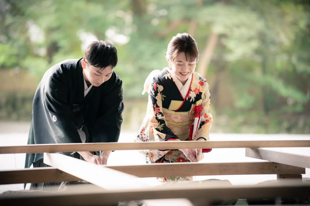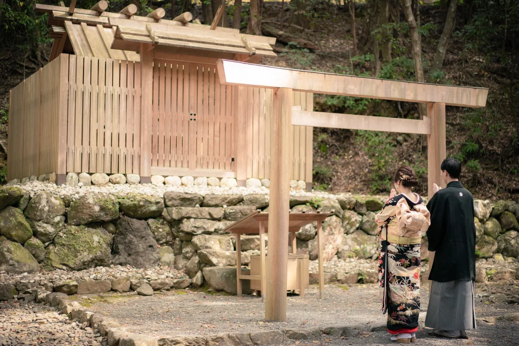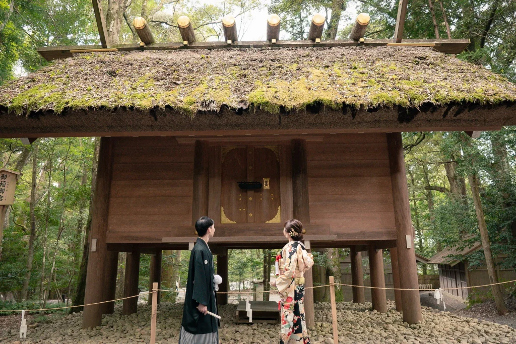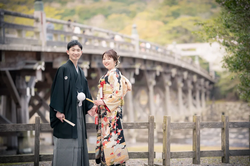 関東からお越しのおふたりは、神社が大好きな新婦様のご希望により、三重県伊勢市の伊勢神宮にて入籍奉告参拝を行われました。ご結婚式は地元で予定されているため、伊勢でのこの一日は、人生の節目を特別な形で迎える大切な機会に。伊勢神宮の神聖な雰囲気と自然に包まれながら、晴天のもとでの奉告参拝は、心に深く残るひとときとなりました。新婦様の白無垢姿も伊勢の風景に美しく映え、ご家族との時間も丁寧に過ごされていたのが印象的です。結婚式とは別に、和装で奉告参拝を希望されるカップルにとって、伊勢神宮は格式と特別感を兼ね備えた理想的なロケーション。神社や日本の伝統文化が好きな方には、ぜひおすすめしたい和のスタイルです。
