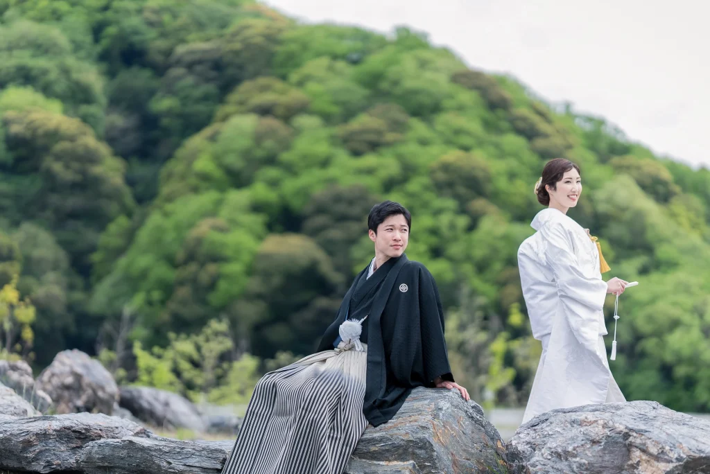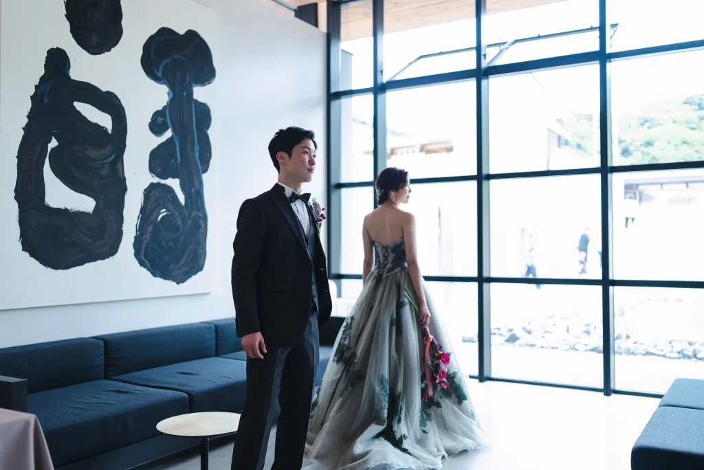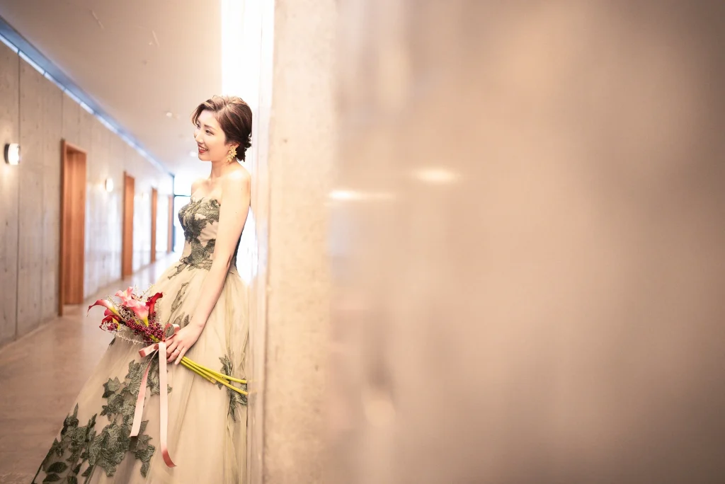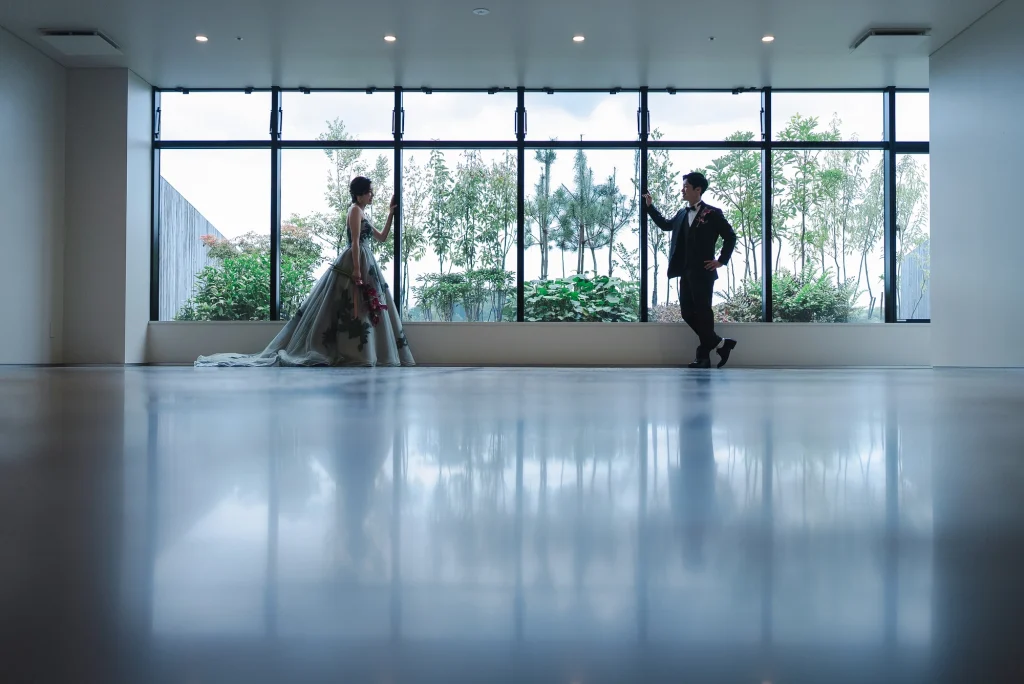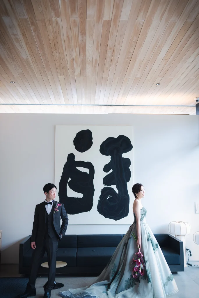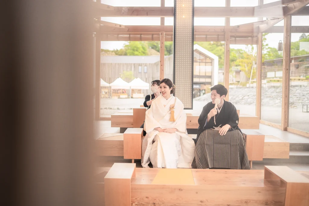 「旅先で一生の思い出に残るフォトウエディングを」というご希望からご提案させていただいたのは、多気町にある日本最大級の商業リゾート「VISON(ヴィソン)」。東京ドーム24個分もの広大な敷地には9つのエリアが広がり、その中でも今回撮影を行った「マルシェ ヴィソン」は、世界最大級の国際デザインコンペティションでも受賞歴を持つ注目のスポットです。今回は白無垢、ウエディングドレス、カラードレスの3種類のお衣裳でロケーション撮影を実施。和の雰囲気とモダンさが調和した空間は、どのお衣裳にもぴったりで、おしゃれで洗練されたフォトウエディングが叶いました。自然・建築・文化が融合するVISONは、非日常感とスタイリッシュな雰囲気が魅力。三重県でフォトウエディングをご検討の方には、バリエーション豊かな撮影が楽しめるVISONでの撮影を心からおすすめします。