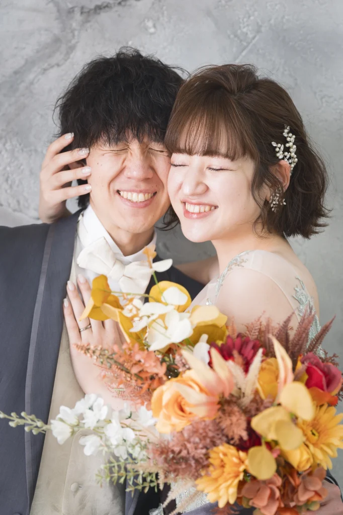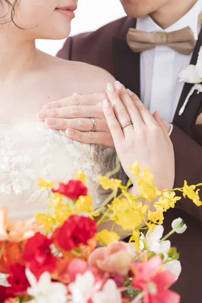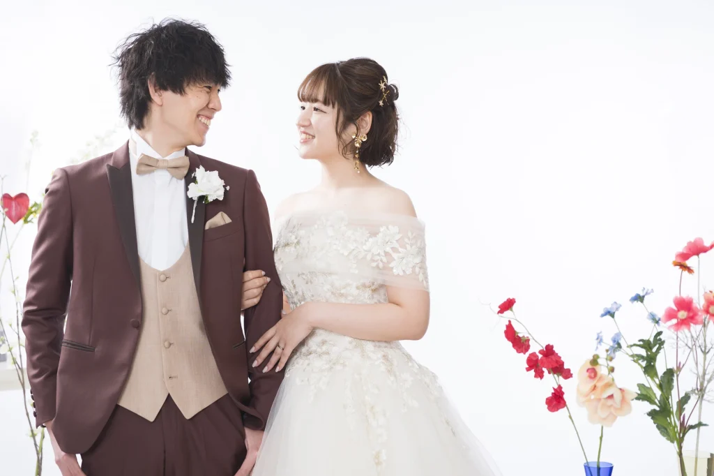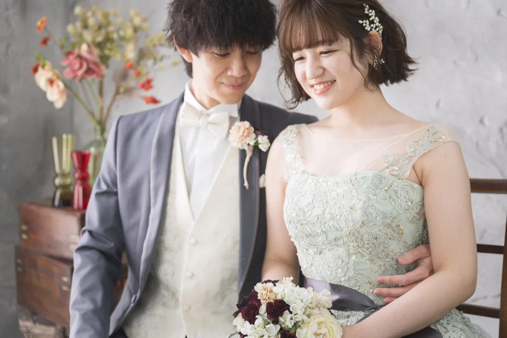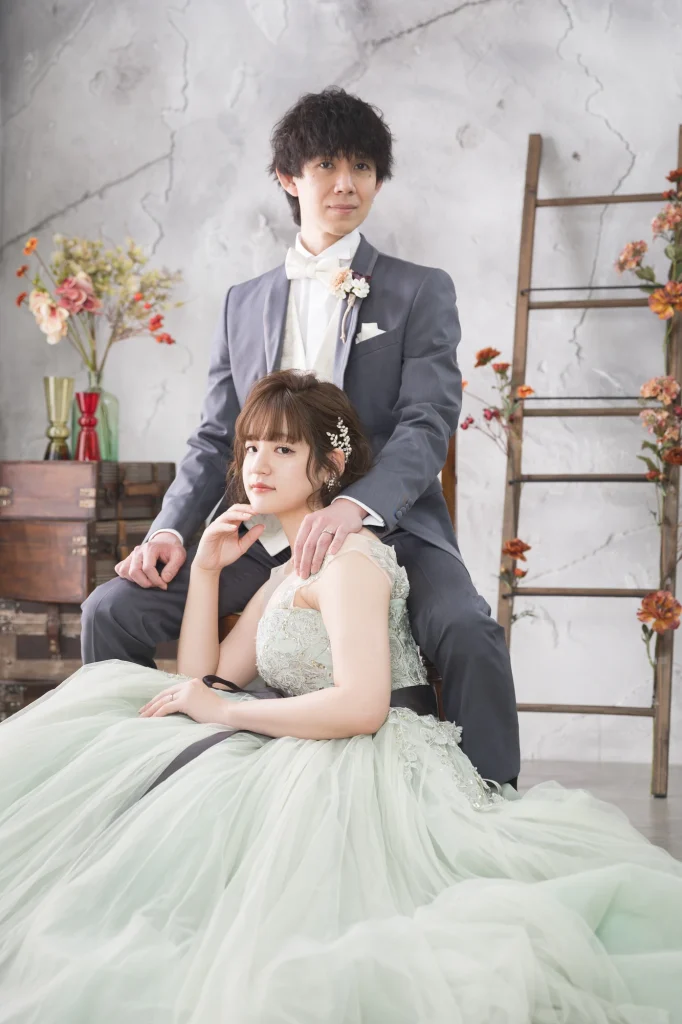 とっても可愛らしい新婦様と、優しくそっと寄り添う新郎様。おふたりのご希望は「お花に囲まれた写真」と「衣裳にとことんこだわること」。その想いを形にするため、春に新たに入荷した季節の花々を、おふたりの雰囲気や選ばれた衣裳に合わせて丁寧にコーディネートいたしました。華やかで温かみのある空間の中、自然と笑顔があふれる撮影に。衣裳は、創業72年の歴史を持つ「すぎしん衣裳店」より、ドレス・和装合わせて3,000点以上のラインナップからお選びいただき、理想のスタイルを実現されました。衣裳もロケーションもこだわり抜いた、まさに“おふたりらしさ”が詰まったフォトウエディングとなり、見る人の心にも残る1日となりました。衣裳もお花もとことんこだわりたい方におすすめの撮影プランです。