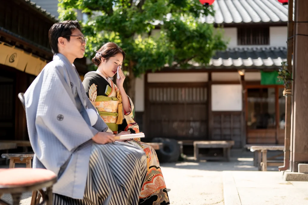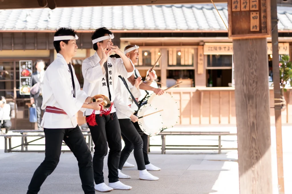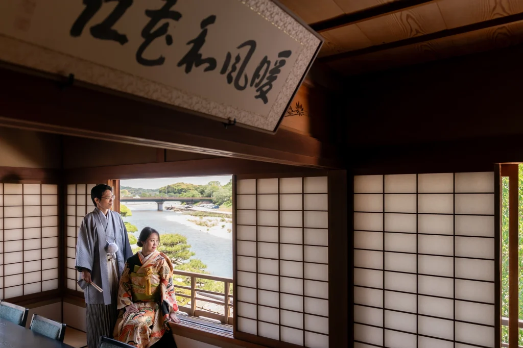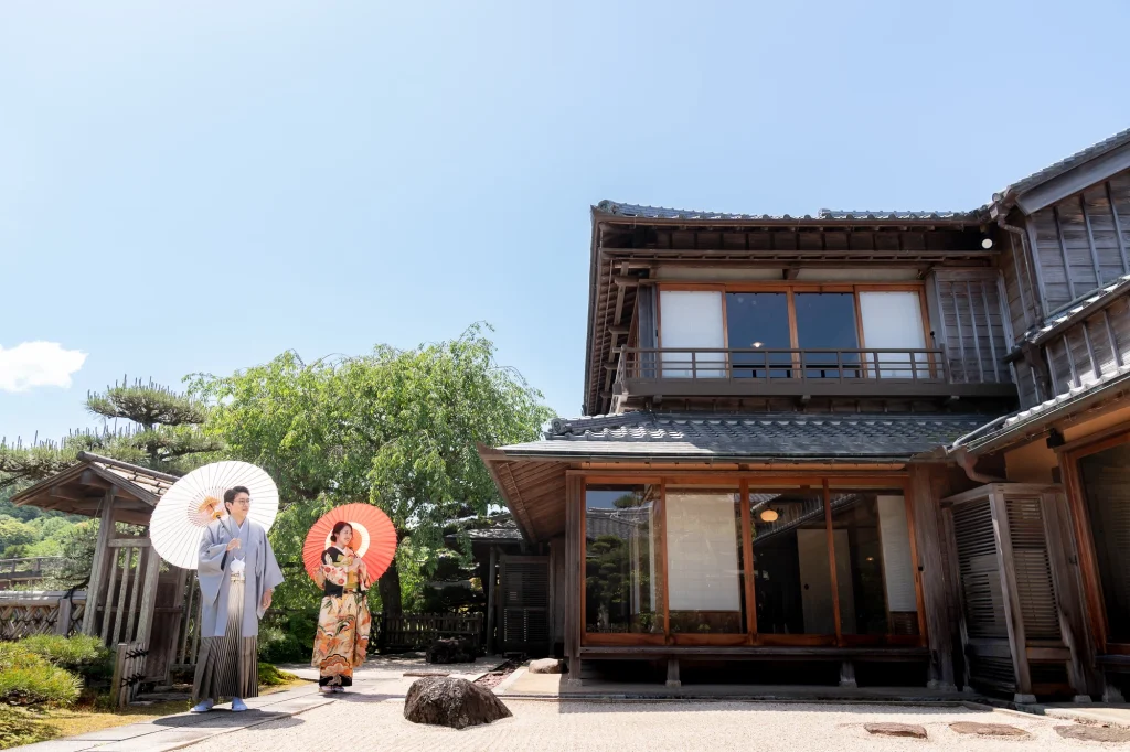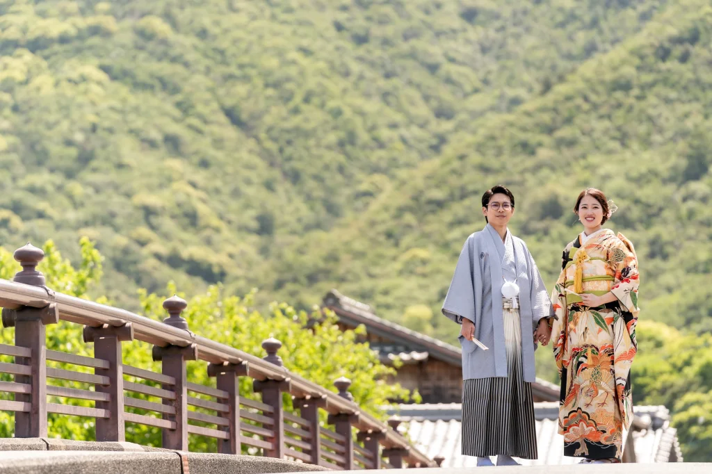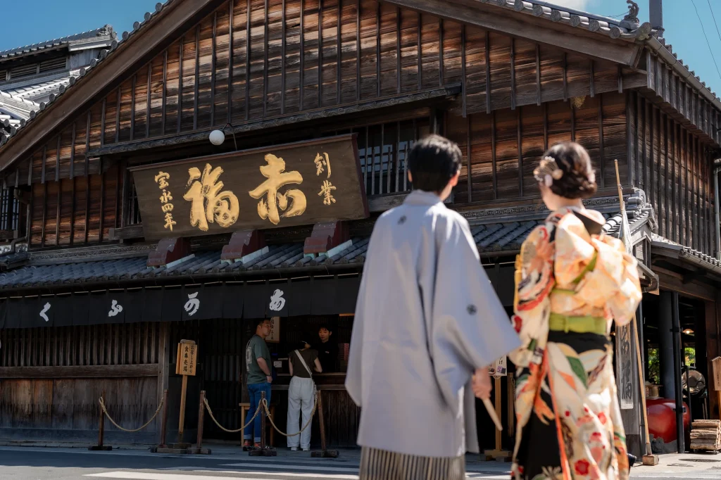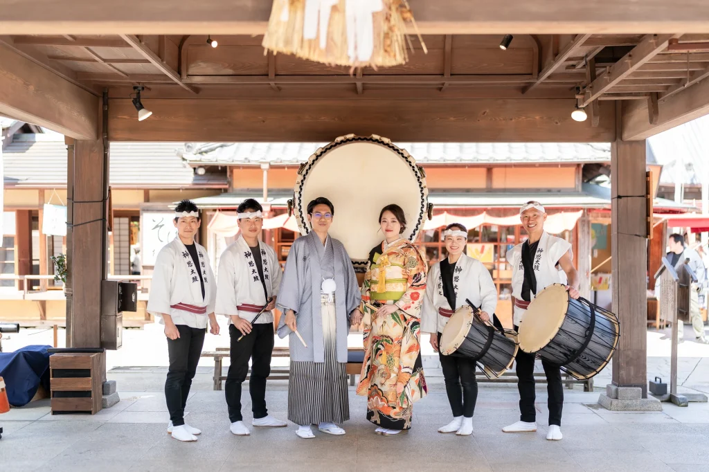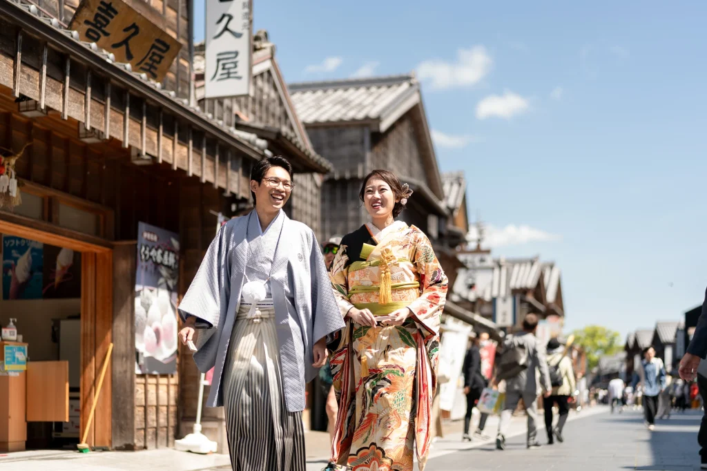 新婦様が生まれ育った伊勢で叶えた結婚式。その舞台となったのは、小さな頃から数えきれない思い出が詰まった「おかげ横丁」。結婚式当日には、町並みを舞台にした前撮りを実施。歴史ある街道と風情ある建物を背景に、おふたりの晴れ姿がひときわ輝きました。撮影中、観光客や地元の方々からの温かい祝福の声が飛び交い、町中がまるでおふたりの門出を祝っているかのような心あたたまる時間に。そして、太鼓櫓で披露されたサプライズの「神恩太鼓」には、新郎新婦だけでなくスタッフも思わず感動。伊勢らしい伝統と人のぬくもりが詰まった一日は、おふたりにとってかけがえのない思い出になりました。伊勢、おかげ横丁での結婚式や前撮りをお考えの方に、心からおすすめできる和婚のかたちです。