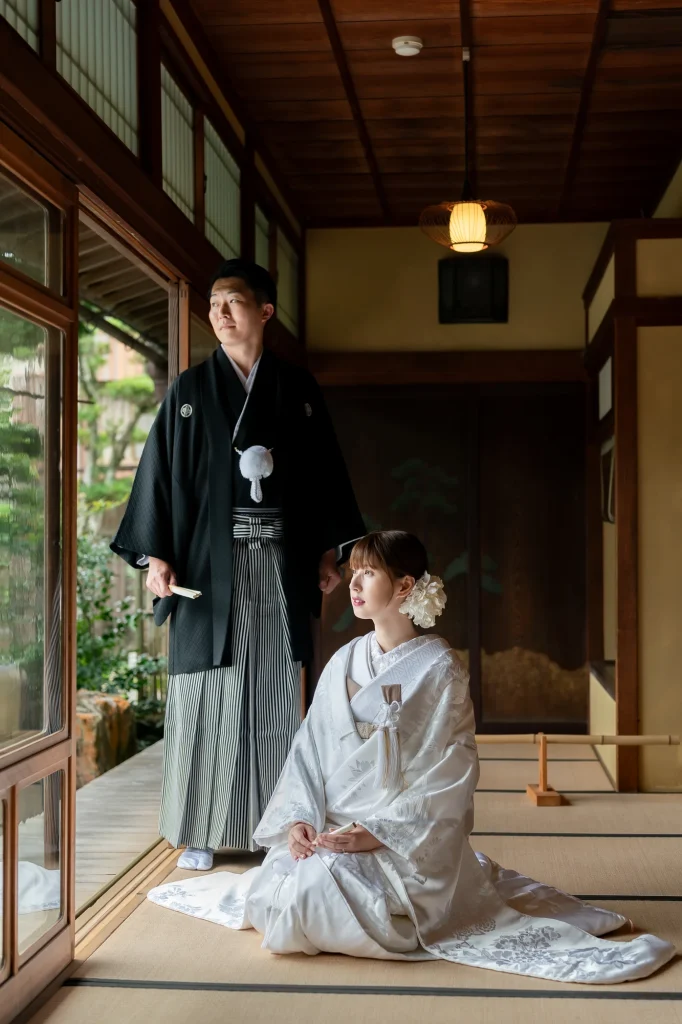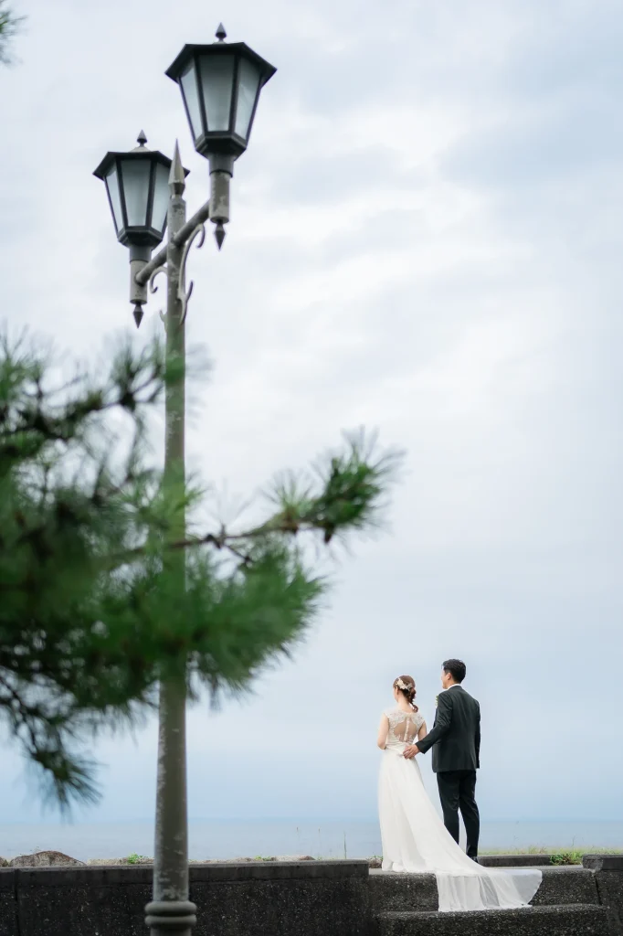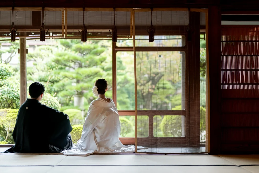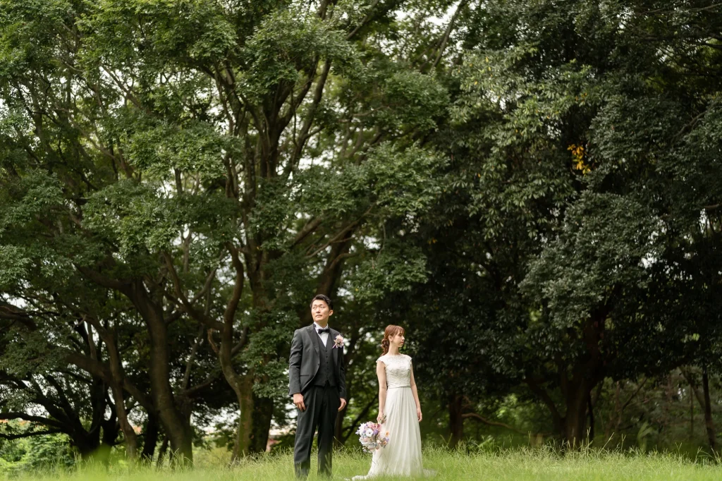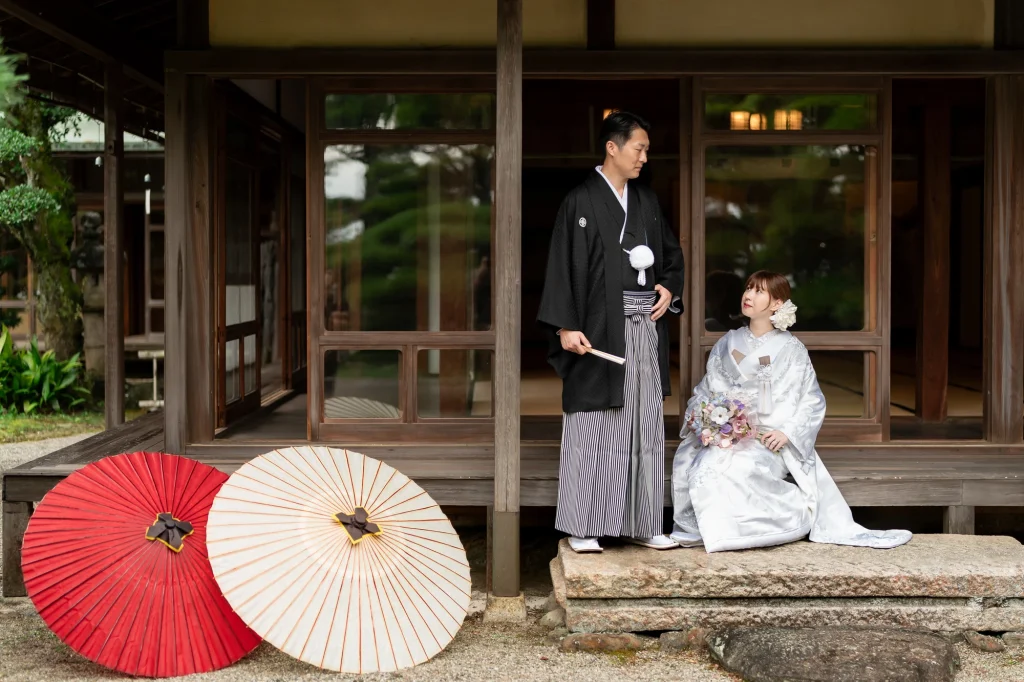 和装は趣ある和館で、ドレスは自然に囲まれたガーデンで――そんな理想を叶えたおふたりのフォトウエディングは、伊勢市二見の歴史的建造物「賓日館」と、伊勢市内の自然豊かな公園で撮影を行いました。白無垢とウエディングドレス、どちらも「純潔」や「新たな生活のスタート」を象徴する白を基調とし、花嫁の純真無垢な美しさを引き立ててくれます。和装では、洋髪スタイルでも綿帽子を合わせていただくことが可能で、伝統とモダンを融合させたスタイルが魅力的でした。格式ある和の空間でしっとりとした撮影を行った後は、開放感あふれるガーデンでナチュラルな表情を引き出す撮影に。異なる雰囲気を一度に楽しめるこのロケーションプランは、和装も洋装も大切にしたいカップルにぴったりです。伊勢の魅力を活かしたフォトウエディングで、一生に残る思い出をかたちにしませんか?