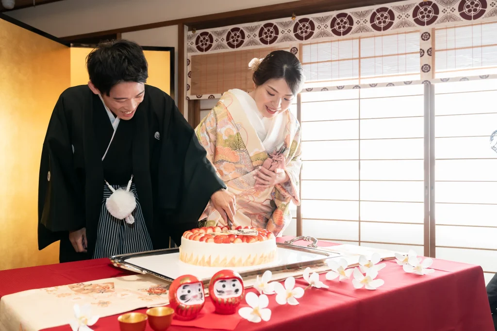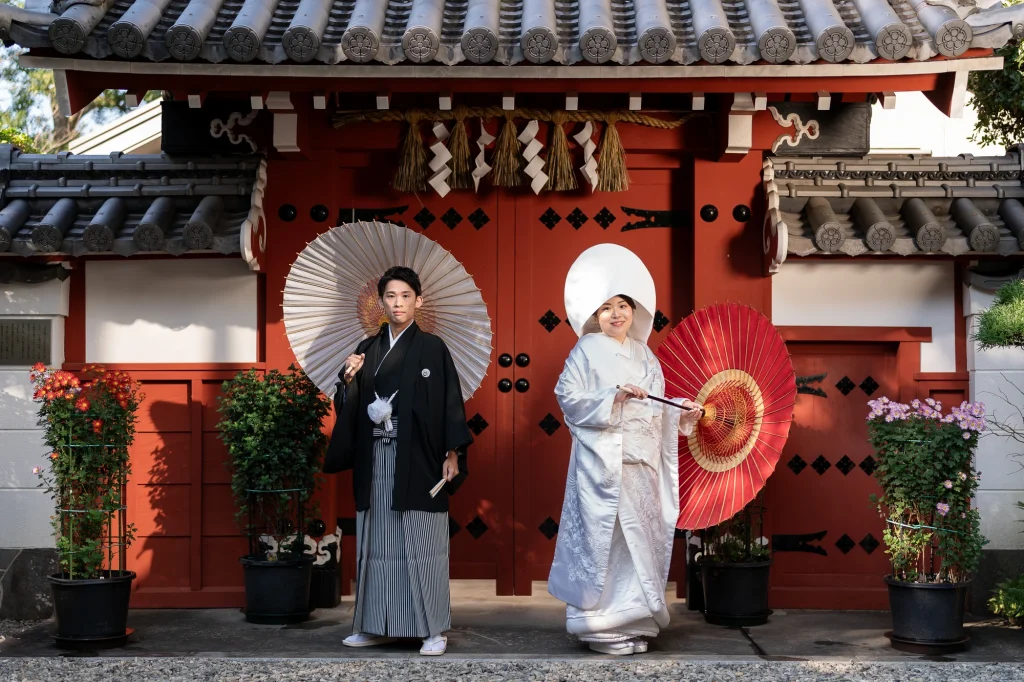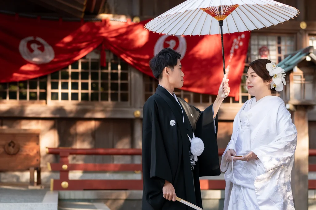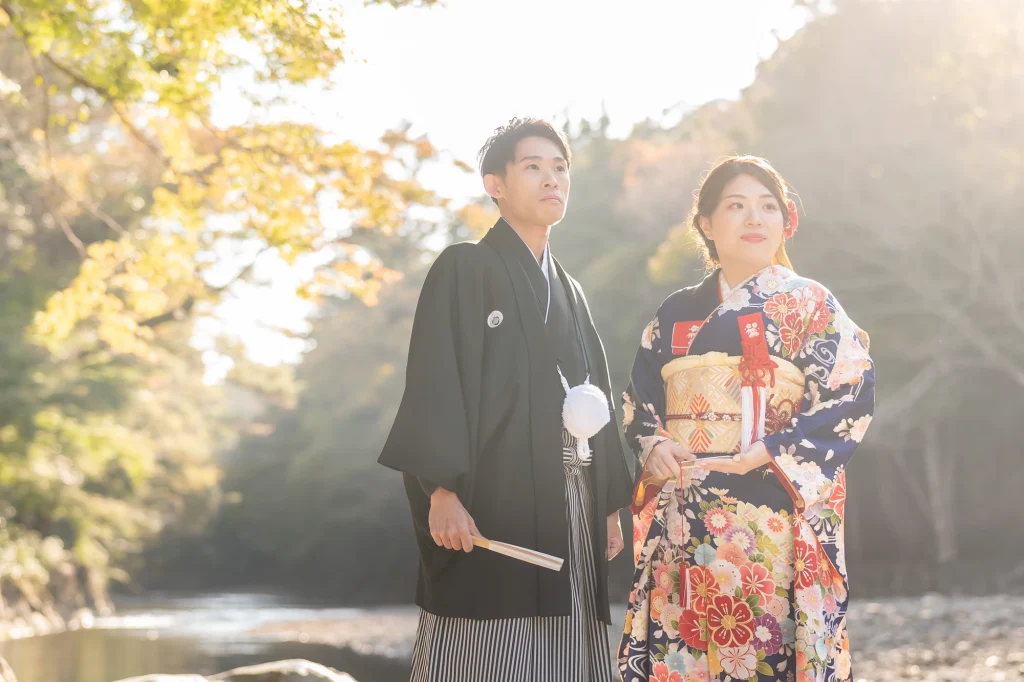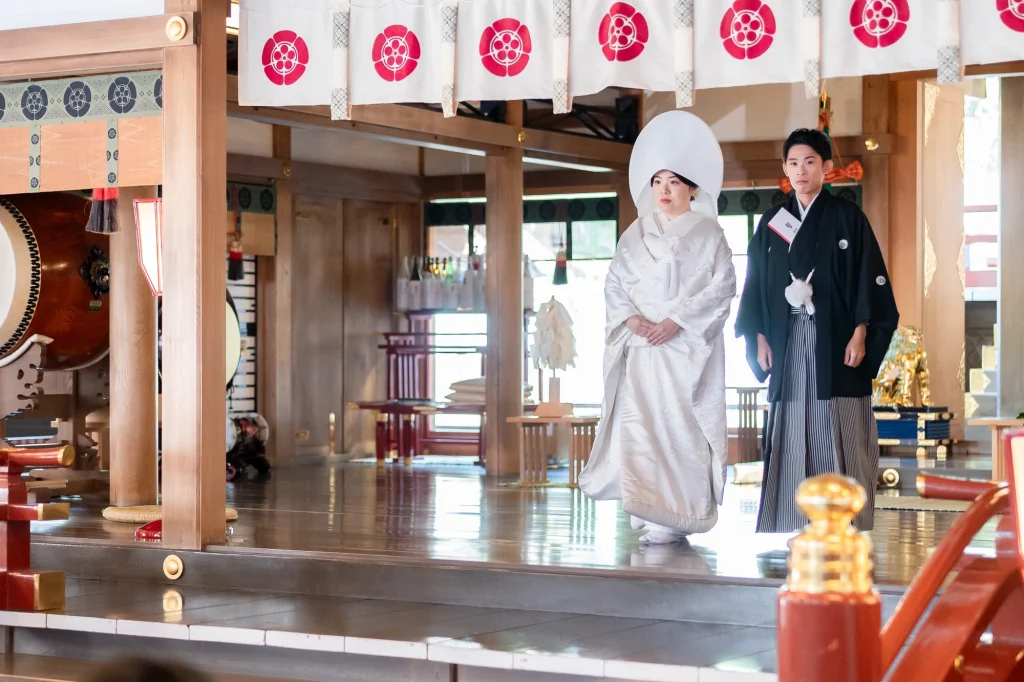 伊勢市のみちひらきの神・猿田彦神社にて、厳かに執り行われた神前式。新婦様は白無垢に身を包み、凛とした美しさでご家族やご友人に見守られながら永遠の誓いを交わされました。挙式後は同神社の披露宴会場にて、ご友人を中心とした賑やかで温かな披露宴が行われ、おふたりらしい演出が随所に散りばめられたこだわりの一日となりました。お色直しでは華やかな色打掛にお召し替えされ、ゲストの皆様から大きな拍手が送られました。結びには伊勢神宮内宮へと向かい、振袖姿で結婚奉告のご参拝。格式ある伊勢の地で、和装に包まれたおふたりの姿はまさに理想の和婚。伊勢神宮・猿田彦神社での結婚式は、日本の伝統を大切にしながらも、おふたりらしさを表現できる特別な一日になります。